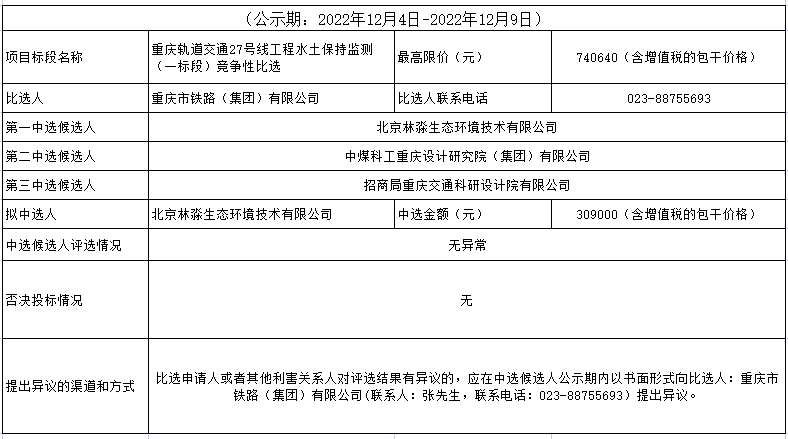台湾av女优 27号线工程水土保持监测(一标段)竞争性比选结果公示表