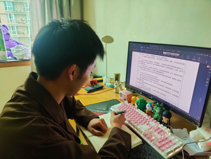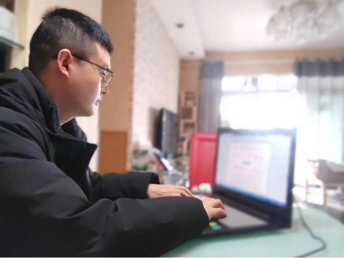 集团直属团支部委员周帅在居家办公期间,动态更新重庆市郊铁路项目推进情况