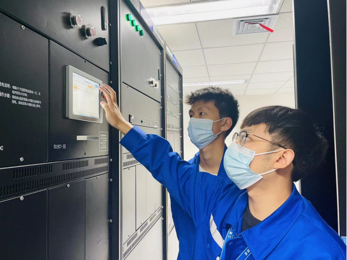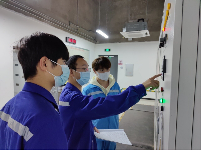 江跳线运营公司维保事业部变电专业员工、团员青年严浩 、龙腾、李靖平坚守岗位,确保生产不停歇