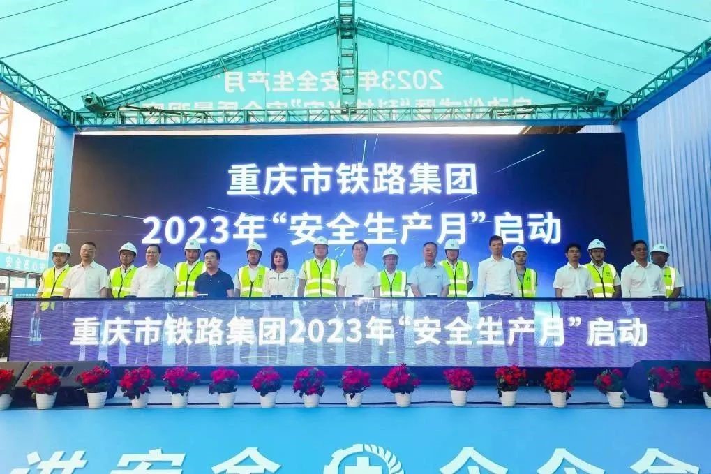 6月1日,市铁路集团在城轨快线15号线一期土建工程5标T3航站楼站至龙骏大道站区间(高架段)施工现场举行2023年“安全生产月”活动启动会暨“科技兴安”安全质量观摩会。