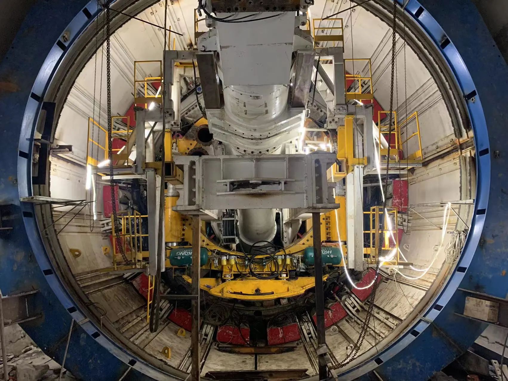 双模是最大的亮点。因为在地下80多米掘进,地质比较复杂,经常会遇到涌水和软硬不均的地质,不能像传统的轨道区间施工,单纯使用土压或泥水盾构模式,所以重庆交通开投铁路集团和中铁一局等创新定制了具备土压盾构机和泥水盾构机两种功能的双模盾构机。当它掘进时,可根据遇到的不同地层情况,实现一键切换,进行快速掘进,工期比传统的盾构至少节约3个月。